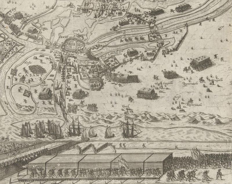 Beleg Sluis met overdekte stormbrug door Maurits